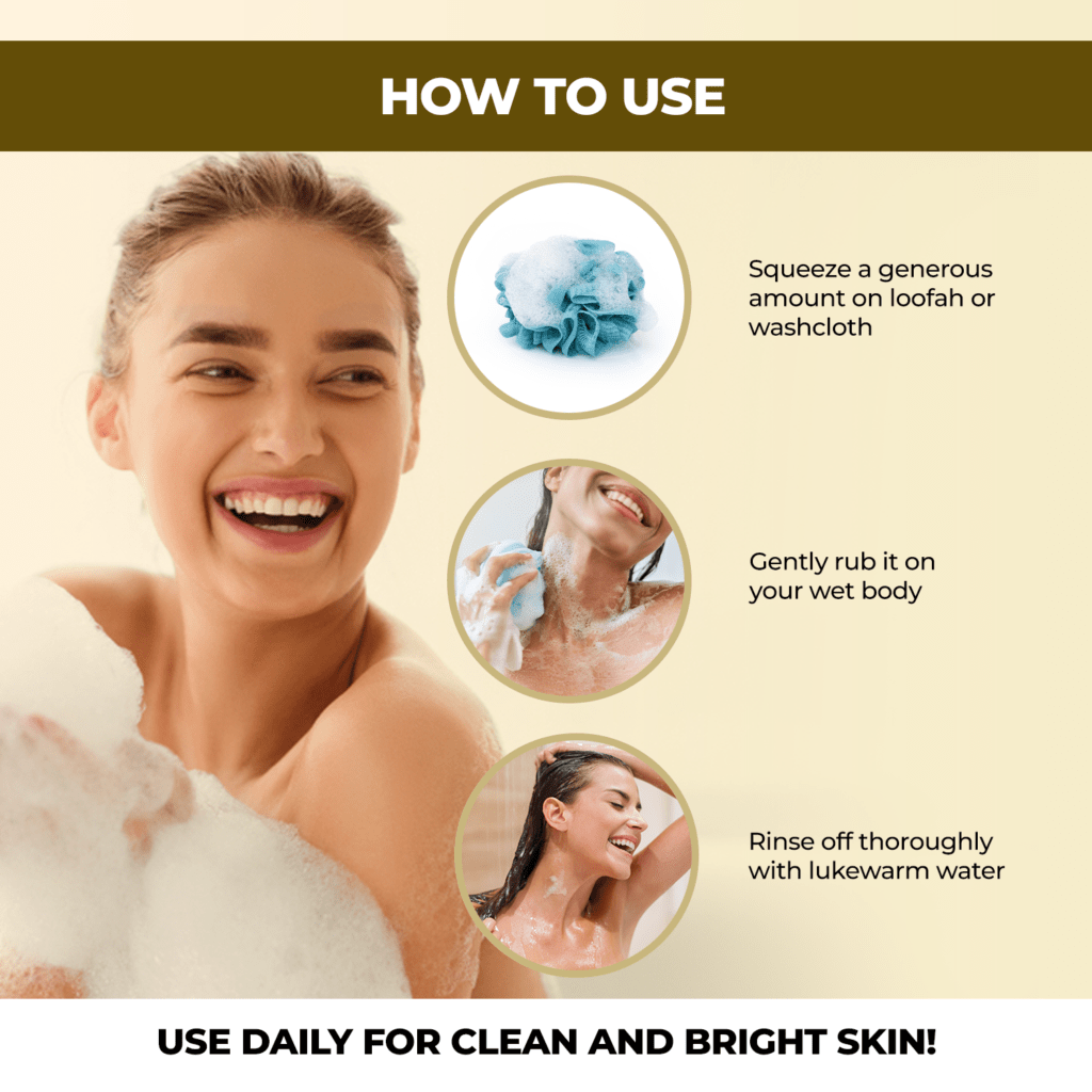 - Minimizes the appearance of body acne and pigmentation.