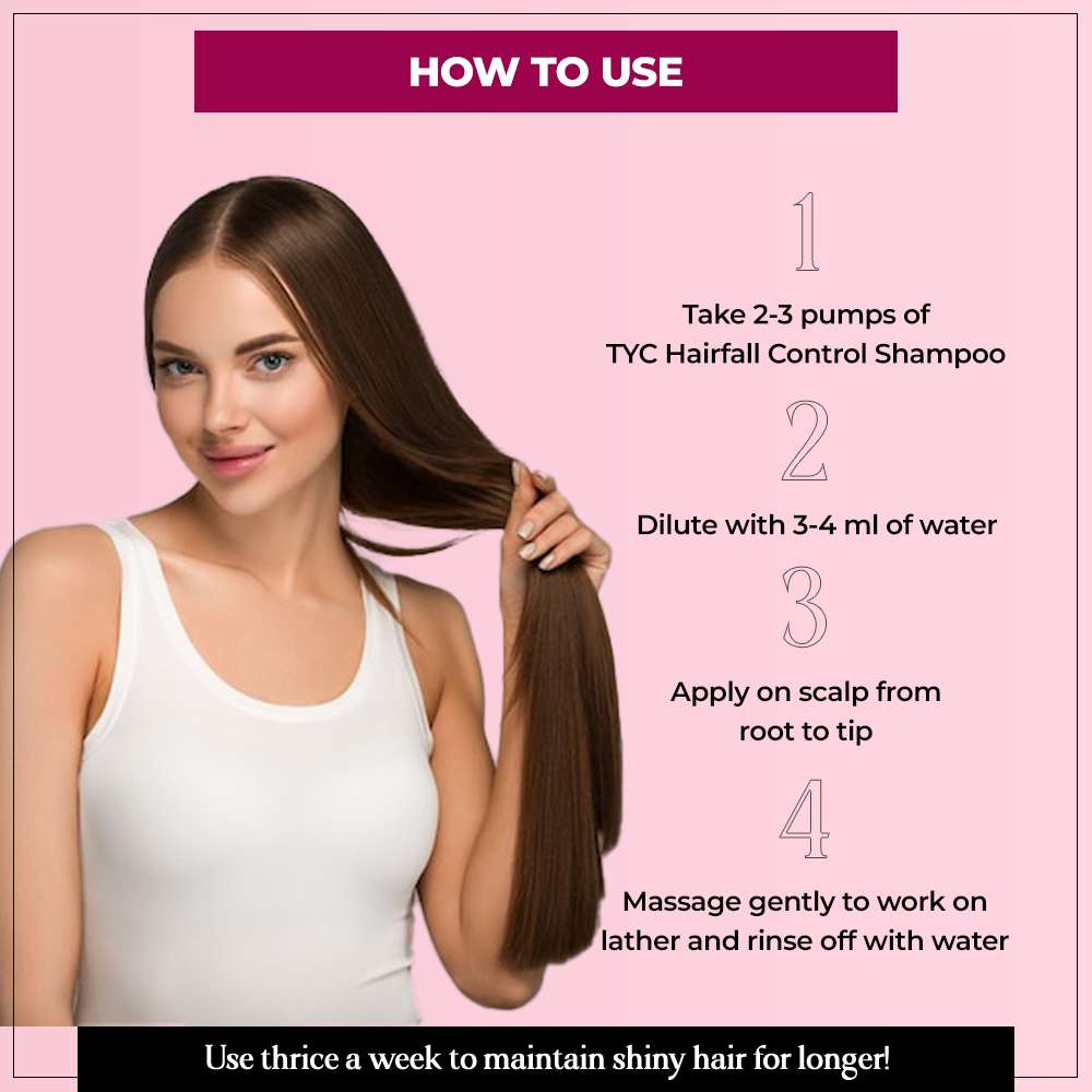 Struggling with hairfall? Look no further – TYC Hairfall Control Shampoo is here to rescue! This potent combination of scientific and ayurvedic ingredients strengthens and protects your hair from pollution, environmental aggressors and stress-induced hair damage.