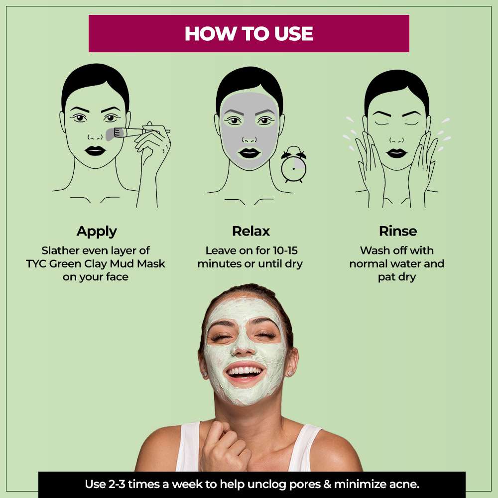 Get ready to treat yourself to the best deep cleaning experience with TYC’s revolutionary Green Clay Face Mask. With an innovative combination of green mud, active ingredients like niacinamide and plant extracts like neem, our face mask effectively tightens and unclogs congested pores.