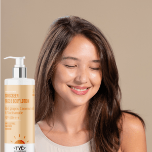 Introducing TYC Sunscreen Face & Body Lotion is your ultimate shield against the Sun’s rays! Packed with Red Grapes, Coconut Oil, and Niacinamide, this SPF 60++++ formula ensures top notch sun protection while keeping your skin hydrated. Enjoy the Outdoor without worrying about harmful UV rays, thanks to TYC’s powerful yet nourishing Sunscreen blend!