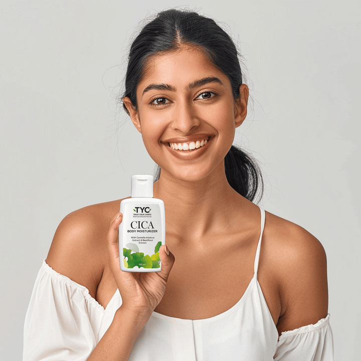 The TYC Cica Body Moisturiser is a soothing, hydrating formula crafted to calm, repair, and deeply nourish the skin. Powered by Centella Asiatica Extract (Cica), it helps to strengthen the skin barrier, works like an anti-oxidant and reduces oxidative stress. Enriched with Beta Vulgaris (Beetroot) Root Extract, it provides lasting hydration, boosts skin elasticity, and restores a natural, healthy glow.