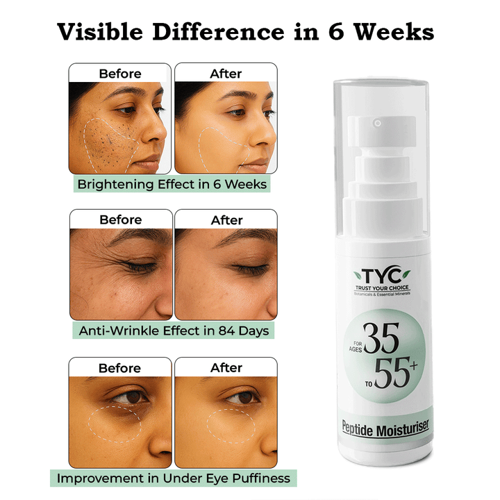 TYC Peptide Moisturizer for Ages 35–55+ | With 12 Advanced Peptides | Firms, Reduces Wrinkles & Fine Lines, Boosts Collagen & Improves Elasticity | Deep Hydration & Radiance | Plant Based Formulation | Suitable for All Skin Types | 50 ml