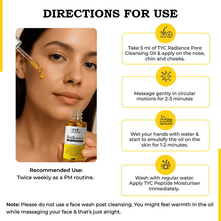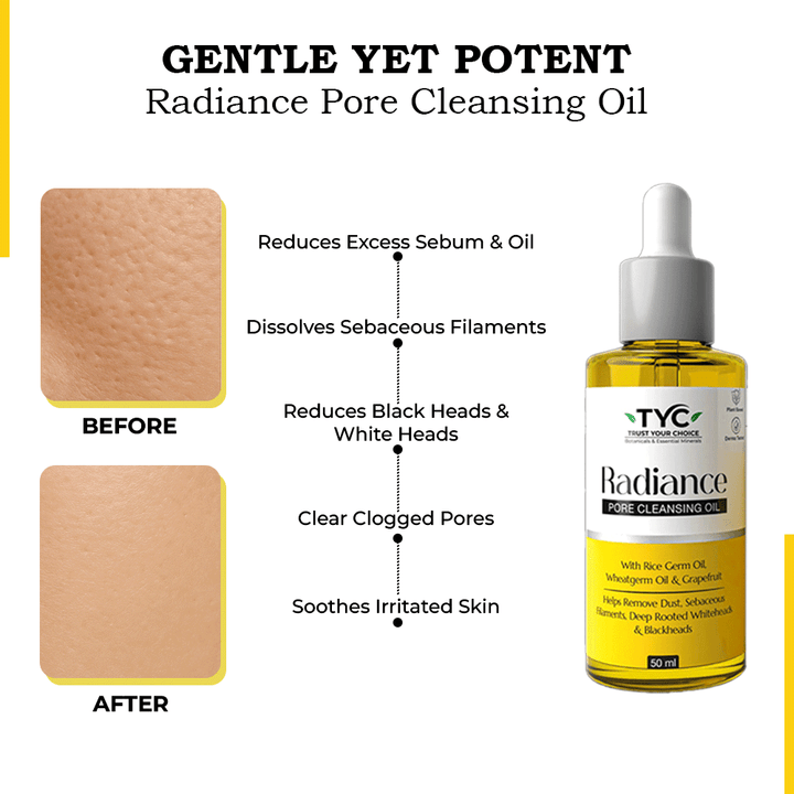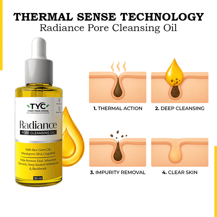 TYC Radiance Pore Cleansing Oil | Natural & Plant-Based | With Thermal Sense Technology & Rice Germ Oil | Deep Pore Purifying Lightweight Face Cleanser | Dissolves Blackheads, Whiteheads & Excess Sebum Filaments | Boosts Skin Radiance | Suitable for all skin types | 50 ml