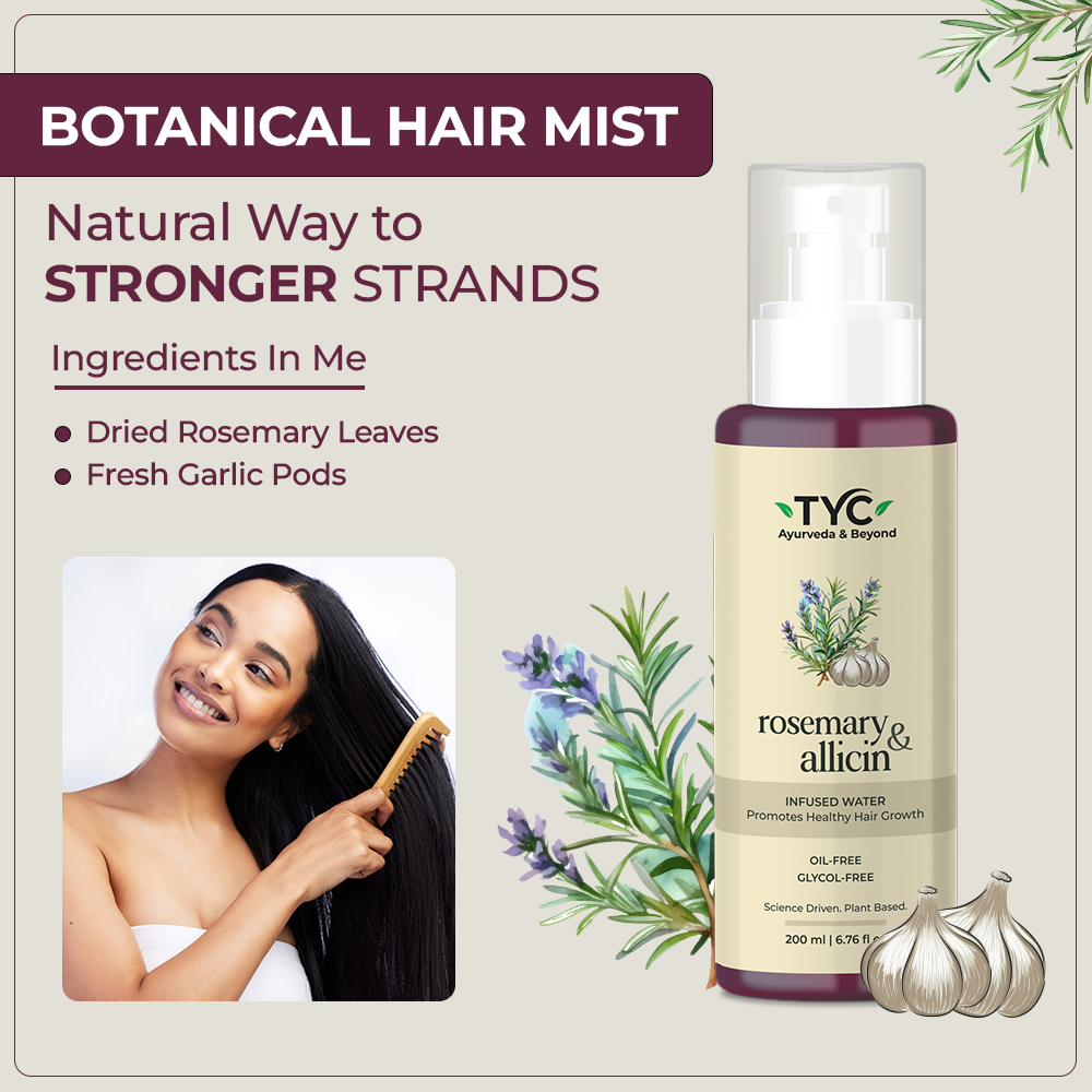 TYC - Trust Your Choice Rosemary and Allicin Water Hair Spray ! Botanical Hair Mist for Hair fall control, Hair growth, Healthy Hair, Improved Scalp Health ! 200 ml