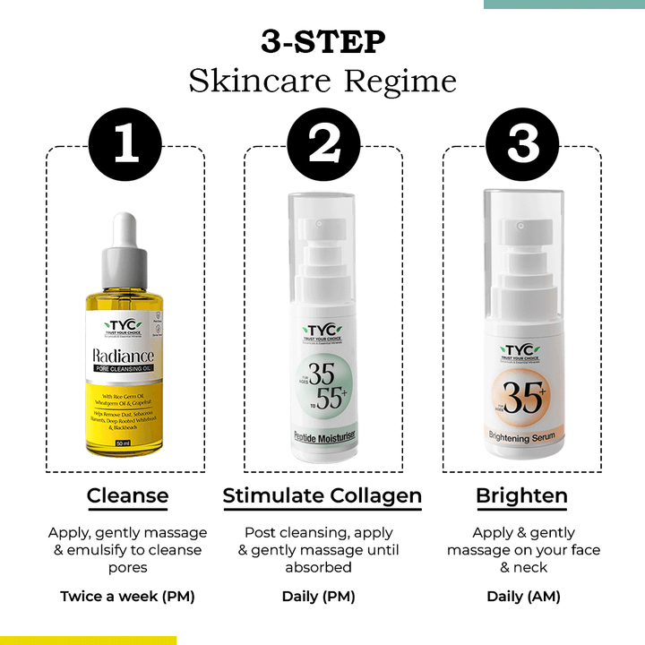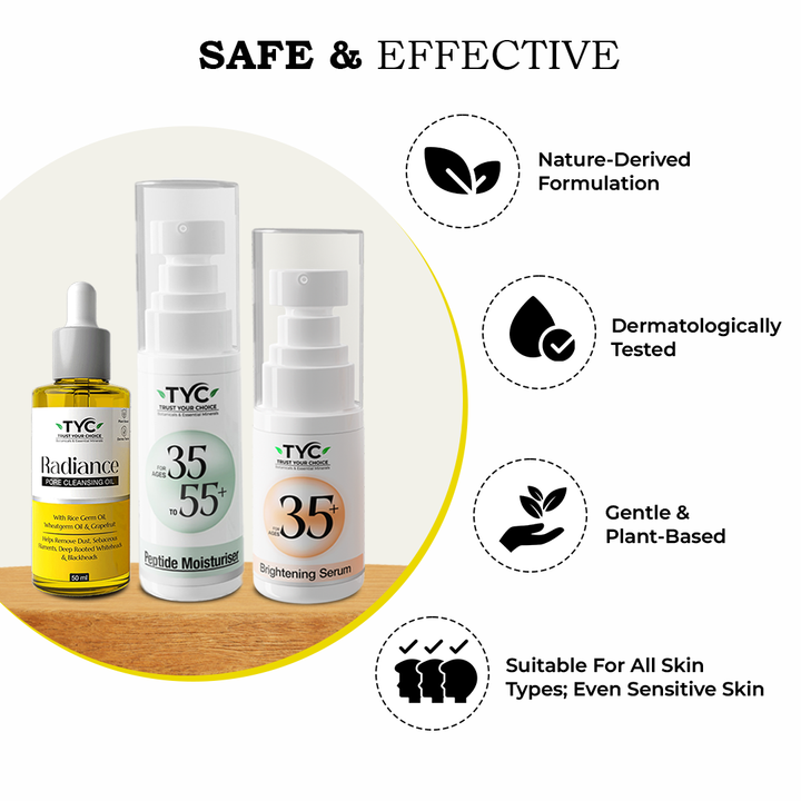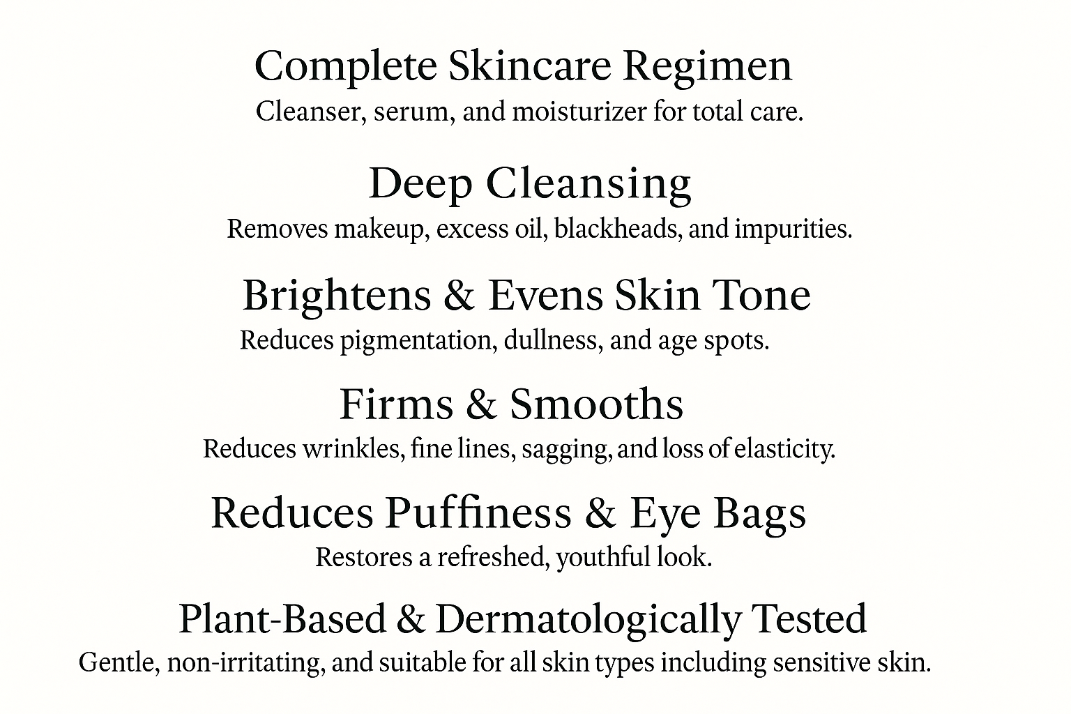 Give your skin a complete age-defying routine with the TYC Advanced Trio Set — a synergistic blend of cleansing, brightening, and rejuvenation. Specially designed for ages 35+, this set features:
