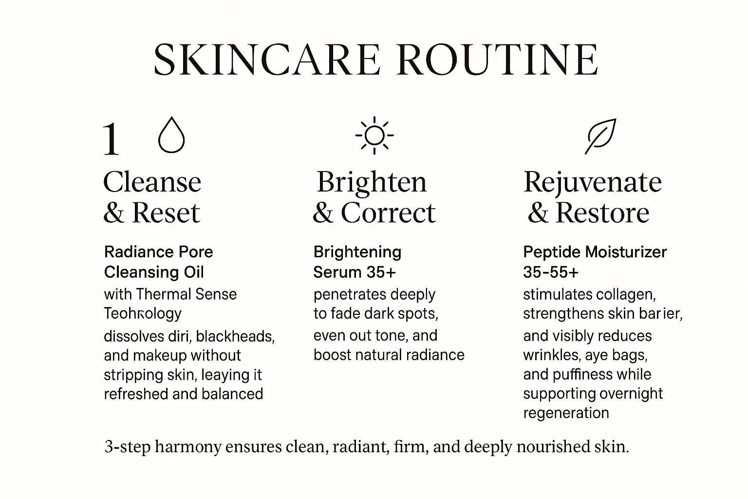 Together, this trio delivers a holistic 3-step ritual to cleanse, brighten, and repair skin for a healthy, youthful glow.